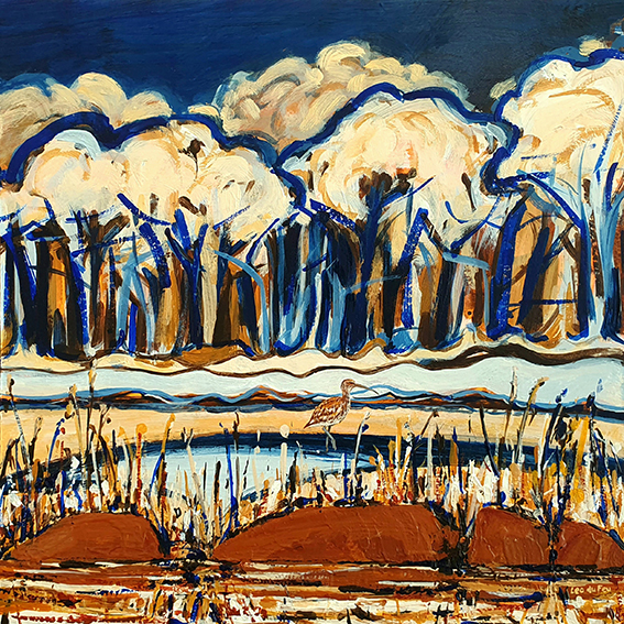 Leo’s inspiration is the natural world. He takes every opportunity to explore the landscapes of Scotland and the rest of Britain, walking, cycling, sketching and taking photos, using material gathered to complete paintings in the studio. Leo has a keen interest in natural history and environment and is supported by Scotrail in his ongoing project to explore Scotland’s rail-accessible landscapes which will culminate in publication of a book.